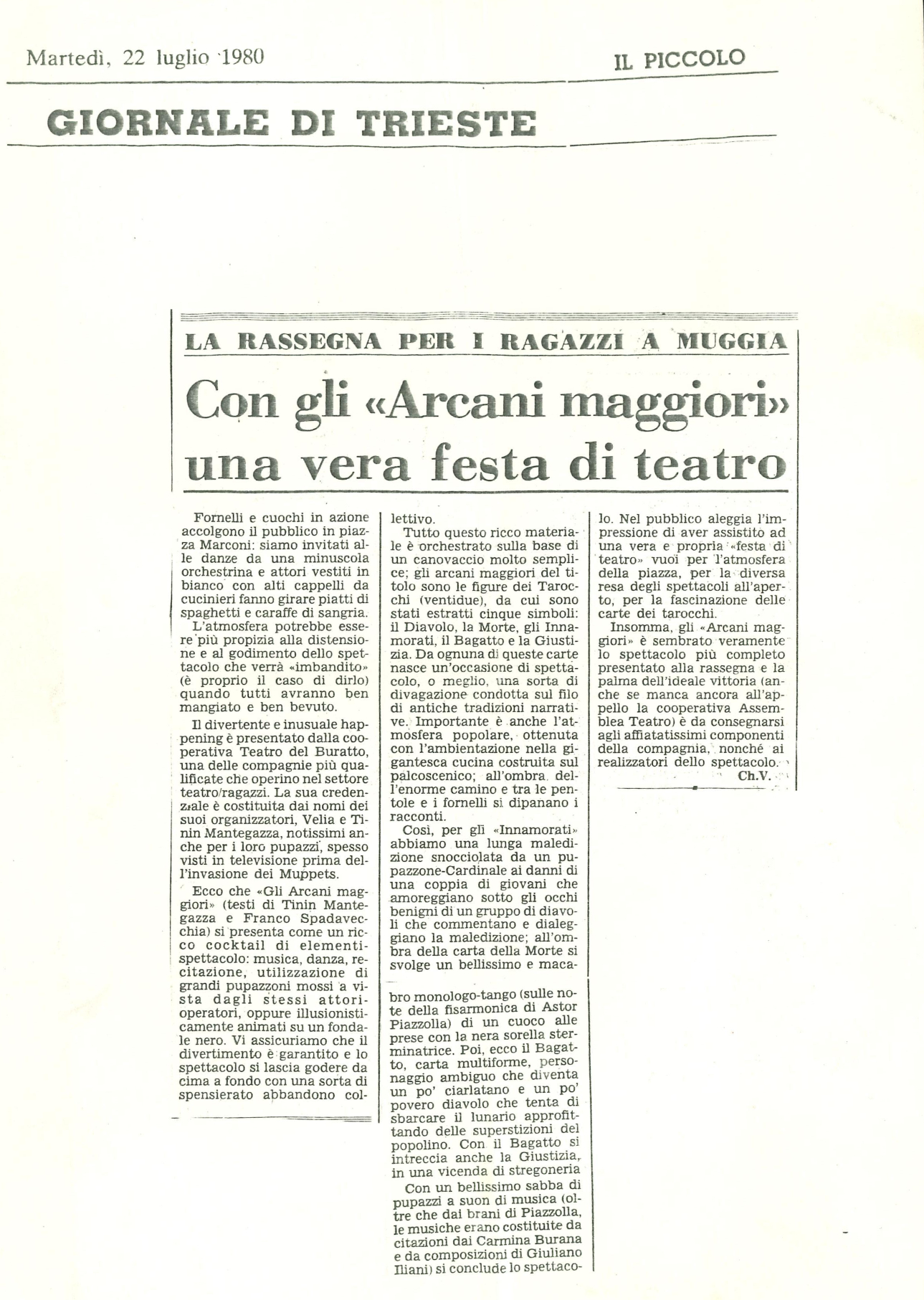 Italo Calvino è stato per la poetica del Teatro del Buratto, un punto fermo. Anche i suoi personaggi, straordinari e fantasiosi, sono e sono stati fonte di ispirazione: nel 1973 si è lasciato ispirare proprio dagli Arcani Maggiori, precisamente dal mazzo disegnato nel 1441 da Bonifacio Bembo per i Visconti, per la trama de Il castello dei destini incrociati.