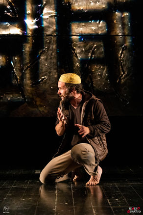 La ricerca scenografica è stata quella di creare il vuoto in scena, che è difficilmente raggiungibile semplicemente “svuotando” lo spazio; da qui la costruzione di un grande pannello/scultura, che domina la scena.