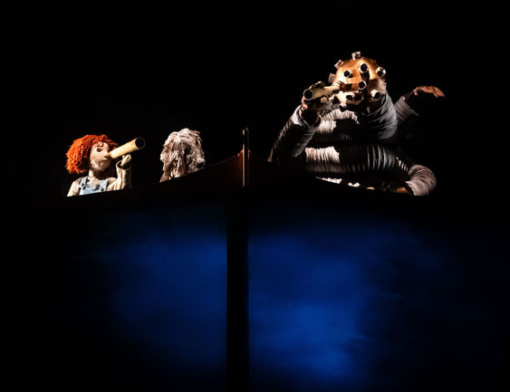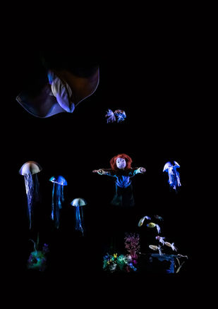Con la tecnica di animazione del teatro su nero i paesaggi marini prendono vita e si popolano di creature e presenze affascinanti.